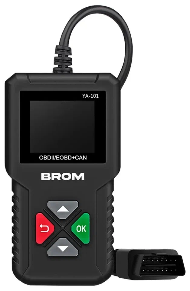Диагностический автосканер (OBD2/EOBD+CAN) с экраном, прочным корпусом с прорезиненными кнопками и поддержкой на русского языка. Модель мультимарочная, работает с легковыми автомобилями, можно обновлять встроенное ПО через ПК (кабель в комплекте). Модель компактная и доступная по цене, и проста в использовании.