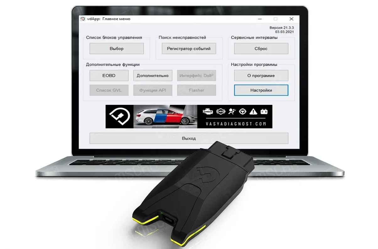 Диагностический прибор необычного форм-фактора с проводным подключением, нацеленный на использование с автомобилями группы VAG 1990-2023 годов выпуска. Автомобили этого концерна (марки Volkswagen, Skoda, Audi, SEAT, Porsche) не всегда поддаются глубокой диагностике, но тут специализированный прибор (поможет если не справились другие модели). Тут используется фирменное ПО под ОС Windows (актуальная версия 23.5.0) с русским языком. Оно и дает доступ к фирменному оборудованию (DSG, webasto и пр.) По ней есть лицензия, помощь и видео курсы для освоения.