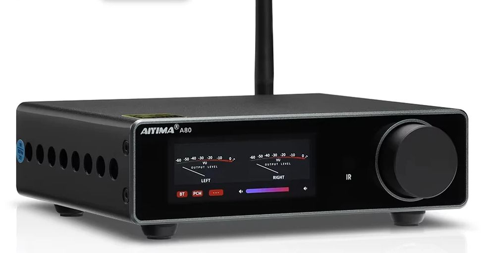 Модель для любителей стиля хайтек и запаса по мощности — усилитель от AIYIMA с большим (относительно компактного корпуса 155х123х41 мм) дисплеем. На цветном экране нагляднее настройки, а во время воспроизведения, отображаются индикаторы уровня сигнала в нескольких стилях.