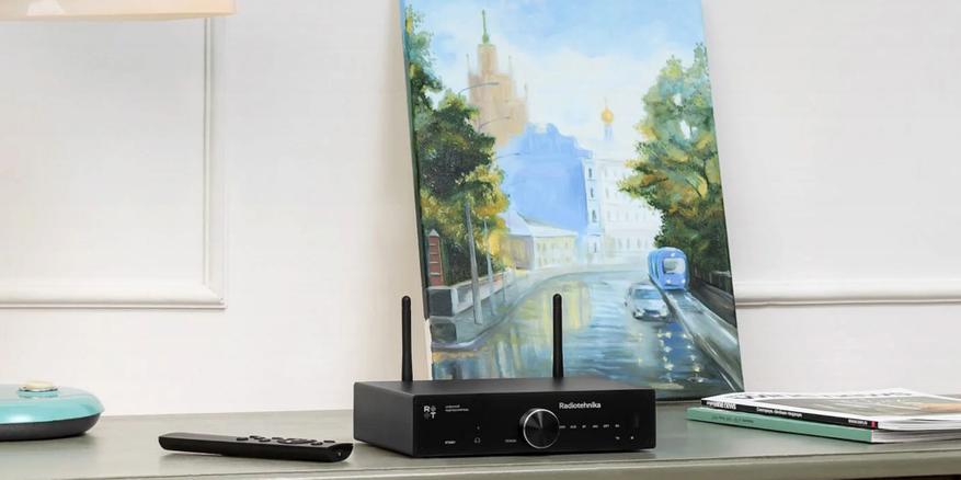 Завершает подборку компактных усилителей вариант со встроенным сетевым Wi-Fi стримингом от компании Radiotehnika. Он же на заглавном фото этого топика. Корпус вполне настольных габаритов (198х153х46 мм), реализуемая мощность до 100 Вт на канал (нагрузка 4 Ом и отношение С/Ш 95 дБ) + можно подключить сабвуфер, Bluetooth модуль с aptX HD. По сети поддерживаются сервисы: Airplay, Spotiy, Qobuz, Tidal и DLNA.
