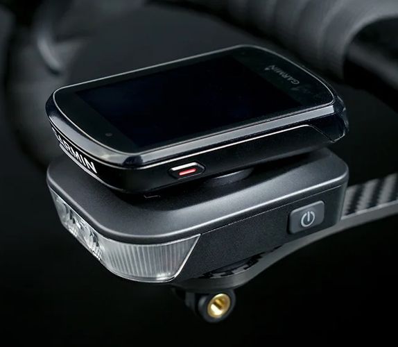 Корпуса алюминиевые, крепление на корпус охватывающее, совместимое с поворотным Garmin и GoPro (с проушиной). Есть термоконтроль и хорошая защита от влаги. Фонари не простые, а «умные»: управляются с велокомпьютера и мобильного ПО, там можно удобно настроить свет и посмотреть оставшееся время работы на выбранном режиме.