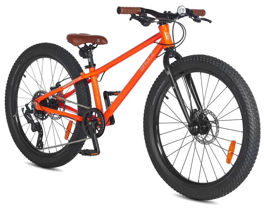 Трансмиссия — целиком Shimano, без вкраплений запчастей китайских брендов. Тормоза — клещевые, по опыту бренда их всех же еще достаточно даже при активном катании, но на 24″ и 26″ Shulz уже ставит дисковую механику.