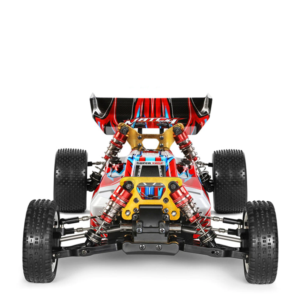 Один из самых быстроходных машинок. С двигателем 3670 2500KV способна достигать скорости в 80 км/ч. Металлические шестерни увеличивают время жизни подвижных деталей и менее подвержены разрушению на высоких скоростях. Корка съемная и легко заменяется на аналогичную. Позади автомобиля установлены ограничивающие колеса блокирующие переворот при резком старте.