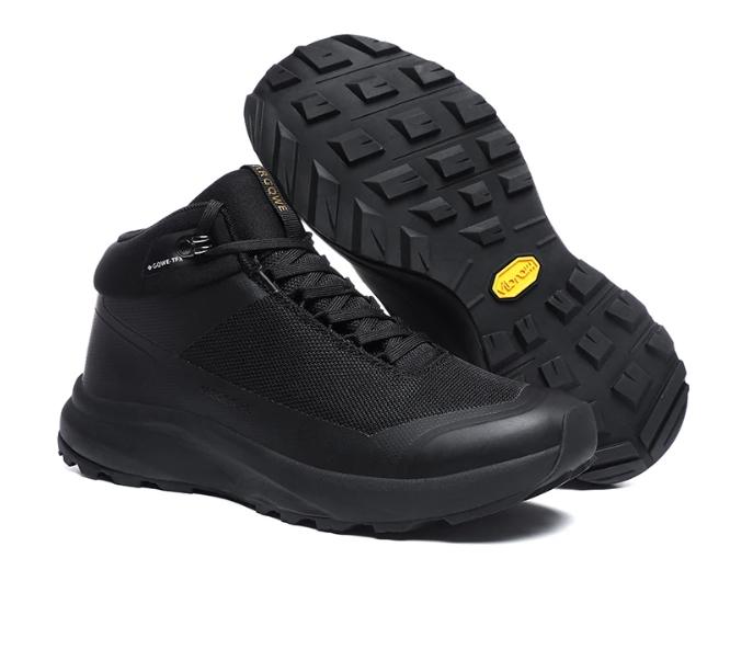 Дальше рассмотрим непромокаемую обувь с фокусом на легкость. Водонепроницаемая вентилируемая поверхность из кожи. Подошва с глубоким рисунком (4 мм) обеспечивает хват на мягком грунте, грязи или снегу, а EVA-мидсол амортизирует.