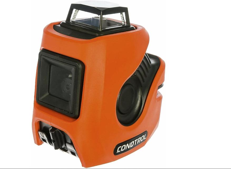 В лазерном нивелире Condtrol Neo X1-360 предусмотрено 2 луча, прибор проецирует вертикаль и горизонтальную плоскость с разверсткой 360°. Точность выполнена на достойном уровне и составляет 0,3 мм/м. Функция самовыравнивания срабатывает в диапазоне до 4,5°, для работы с диагональной разметкой опцию можно отключить. Рабочий диапазон инструмента 20 м, чтобы расширить его до 60, придется воспользоваться детектором. Лазер красного цвета, а это негативно сказывается на видимости линий при интенсивном искусственном освещении или ярком дневном свете.