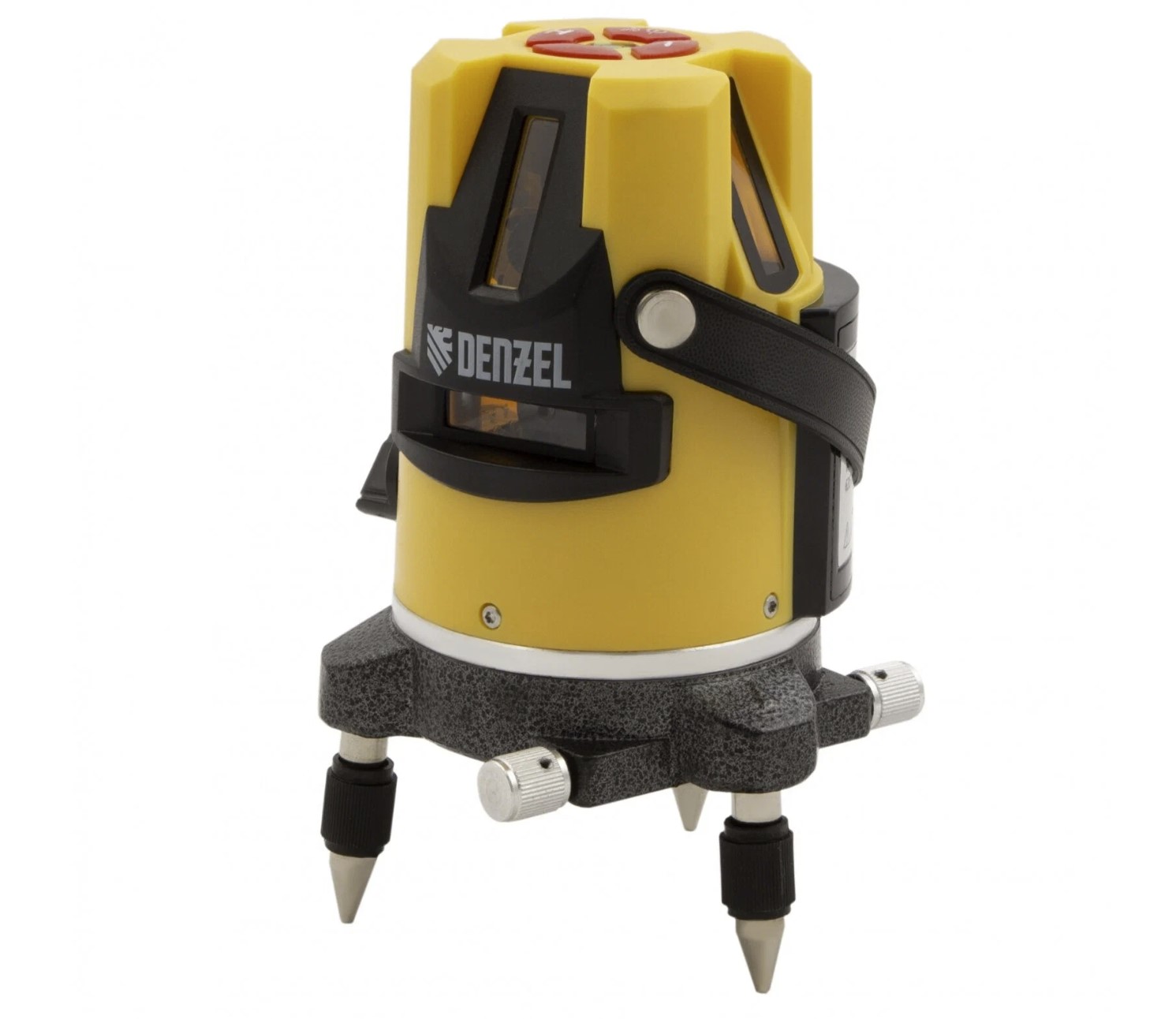 Одна из самых простых моделей — Denzel LX3 не обладает выдающимся функционалом и подойдет для эксплуатации только в помещениях, но это компенсируется вполне доступной ценой. Лазерный уровень проецирует четыре линии по вертикали, одну линию по горизонтали и точку отвеса. Инструмент работает с точностью построения до 0,3 мм/м. Избежать ошибок при разметке поможет автоматическое самовыравнивание — если допустимый угол наклона 3° будет превышен, инструмент оповестит звуковой и световой индикацией. К сожалению, возможность отключения функции не предусмотрена производителем.