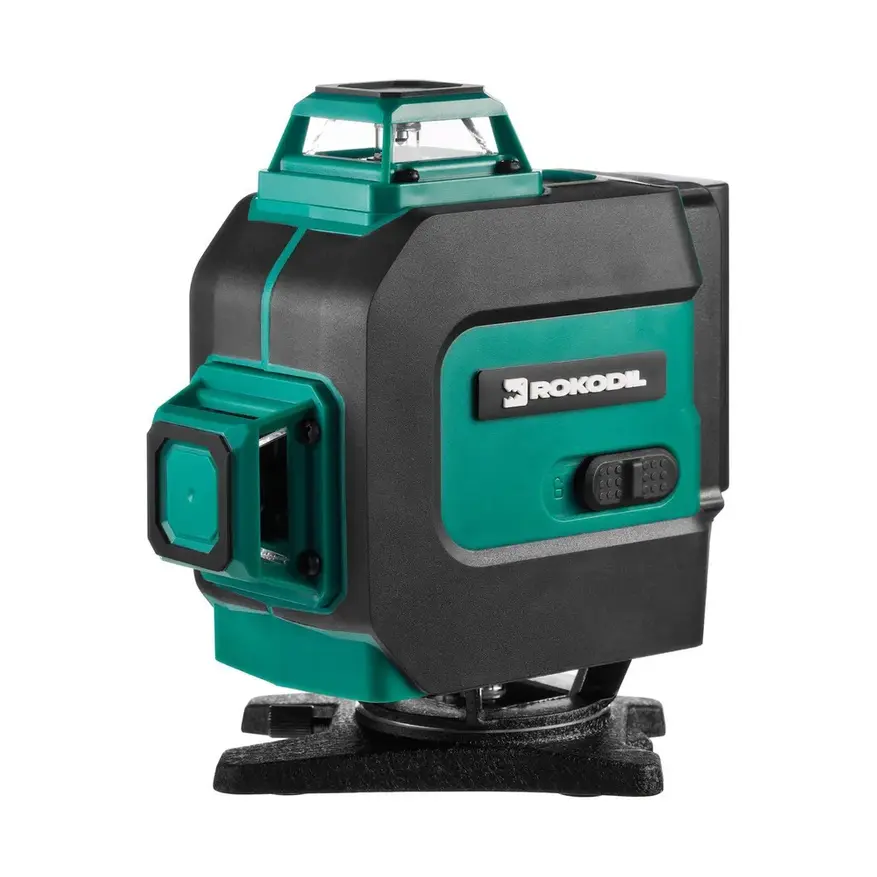 Отличительным преимуществом модели является наличие нижнего горизонта. У подавляющего большинства 3D, 2D, 1D лазерных нивелиров горизонтальная линия проходит только в верхней части инструмента, у Rokodil Ray Max есть и верхний, и нижний горизонт, что обеспечит успех и удобство в проведении разметки для работ с напольными материалами. Радиус построения 30 м позволит сделать замеры даже в просторных помещениях и участках без необходимости использовать приемник. Функция работы с приемником также присутствует. Модель оборудована лазерными излучателями SHARP японского производства — они воспроизводят яркие четкие зеленые лучи, которые отлично просматриваются на открытом воздухе и в помещениях с ярким освещением. Есть 5 уровней яркости, поэтому настроить комфортную интенсивность луча вы сможете самостоятельно. Нивелир отличается продолжительной автономной работой и способен держать заряд более 10 часов. Есть также вариант подключать устройство к сети — удобно, если аккумулятор оказался разряжен невовремя. Корпус выполнен из прочного нейлонового пластика, имеется прорезиненная защита как корпуса, так и всех башен в отдельности, есть силиконовые уплотнители. Защита от влаги и пыли соответствует уровню IP54. Прибор надежный, рассчитанный на эксплуатацию в сложных условиях и долгий срок службы. Гарантия от производителя действует 5 лет.