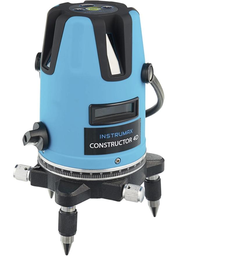 Строительный уровень из бюджетного сегмента с хорошей точностью и базовым функционалом для разного типа работ. INSTRUMAX Constructor 4D строит 4 вертикальные и 1 горизонтальную линии на 120°. В арсенале инструмента имеется точка отвеса, упрощающая перенос разметки с пола на потолок или обратно. Погрешность построения условная, составляет не более 0,2 мм/м. Автовыравнивание работает в диапазоне до 3°, обратите внимание, что отключение функции невозможно. Дальность построения 20 м, если приобрести приемник, получится расширить ее до 70 м.