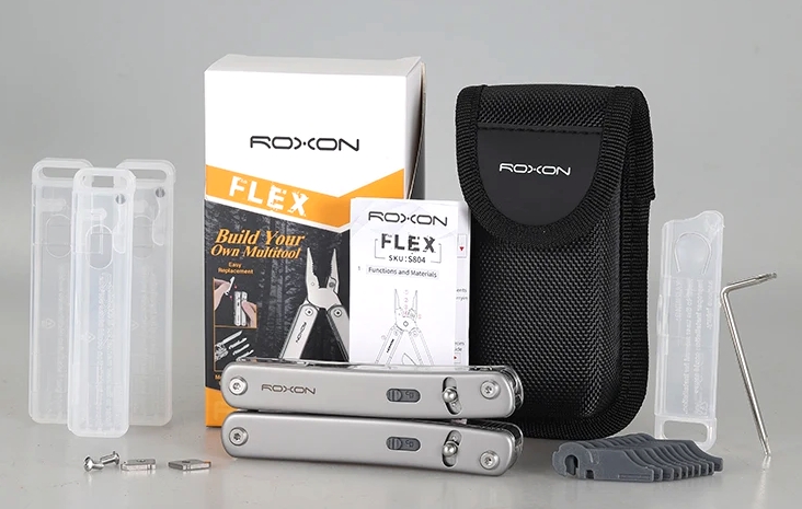 Модульная модель дает свободу выбора состава необходимого инструмента в мультитуле. Части сменные, устанавливаются на основной раскладной корпус с пассатижами (режущие губки тоже сменные, сталь 3Cr13). На выбор 20 вариантов вставок (есть интересные вроде огнива или спецключей), и посадочных мест по 5 в каждой рукоятке. Ключ для замены в комплекте. Лишнее можно заполнить пластиковой проставкой, есть фиксация выдвинутого положения.