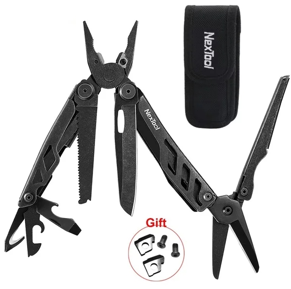 Магазин NexTool официальный на маркетплейсе, на выбор два цвета инструмента, в комплекте сменные бокорезы и нейлоновый чехол, а в подарок дают двухсторонний карабин.