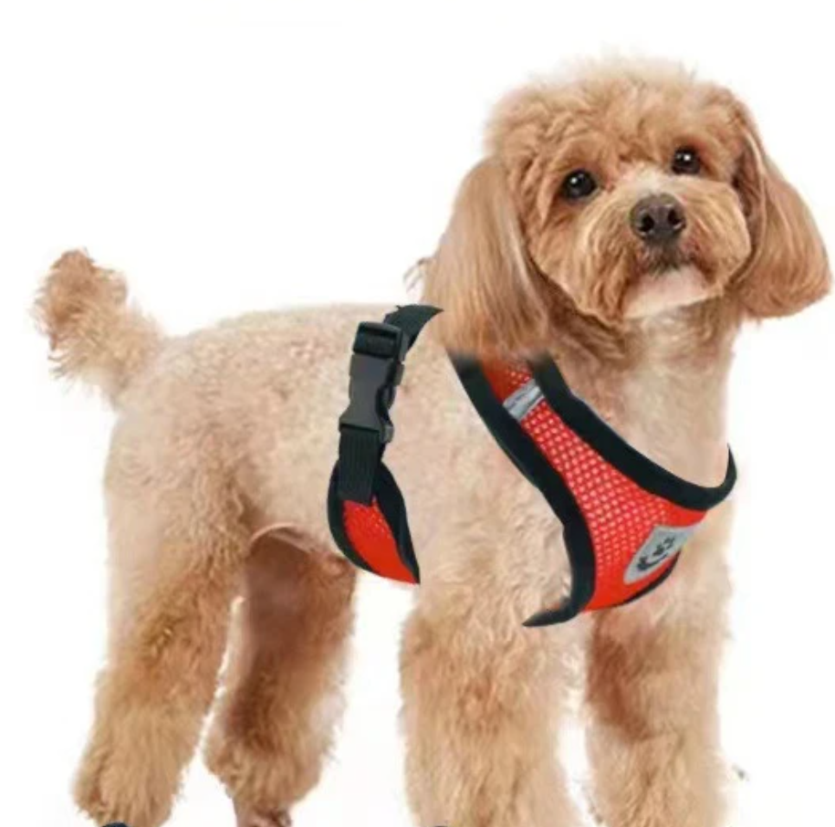 Полиэстеровая шлейка с мягкой дышащей сеткой. Материал нейлоновый, плотный, подходит для прогулок и тренировки. Конструкция регулируется, застежки выдерживают нагрузку. По краям проходят светоотражающие элементы для видимости в темноте. На спине расположена опорная ручка — можно придержать собаку или помочь ей подняться. Доступные размеры: S, M, L. Подходит маленьким, средним и крупным собакам при корректном подборе обхвата груди. В комплект входит одна шлейка. Оранжевый и розовый цвета.