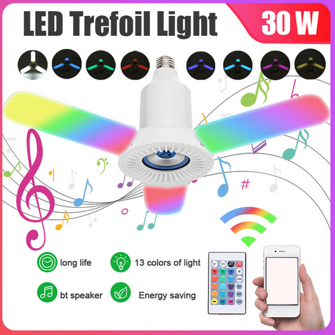 Данная лампа может светить одним из тринадцати цветов, которые переключаются пультом дистанционного управления. Она также имеет встроенный динамик (посередине), то есть лампа может воспроизводить музыку по Bluetooth. При покупке лампы можно выбрать какого цвета будет динамик: красный, синий, жёлтый или зелёный. Размеры лампы: 420х170 мм, цоколь E27. Её мощность — 30 Вт.