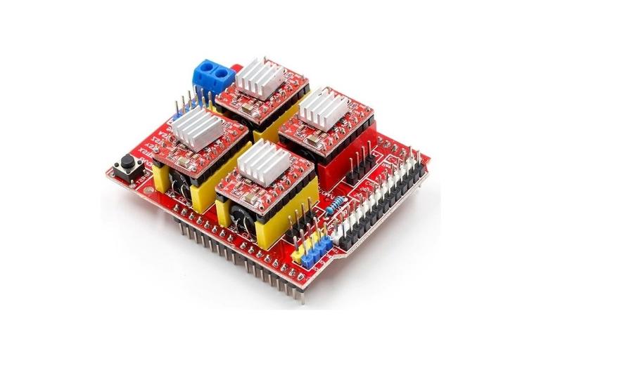 В комплекте есть плата Arduino Uno R3, модуль CNC Shield v3, драйверы двигателей A4988 (4 шт) и мелочевка (кабель, радиаторы).