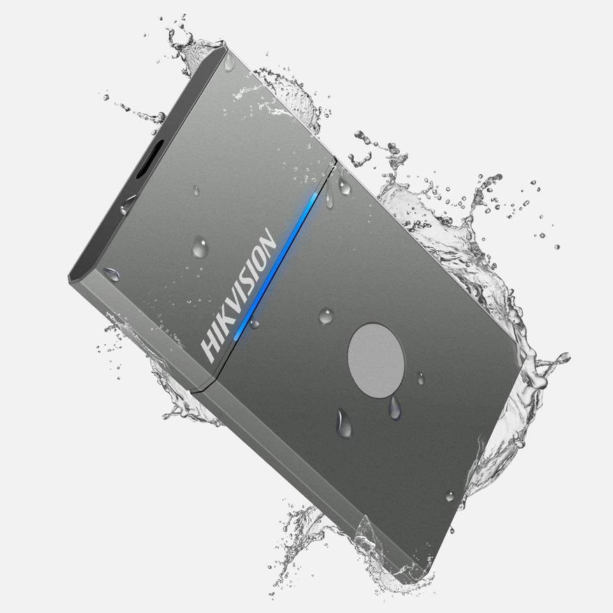Портативный SSD-накопитель Hikvision с со сканером отпечатков пальцев и скоростями до 1060 Мб/с. Интерфейс USB 3.2. Возможный объем памяти 512Гб или 1 Тб. Алюминиевый корпус защищен от влаги и пыли по стандарту IPX7. Размеры: 83.5*53.5*7.9мм, все 75г.