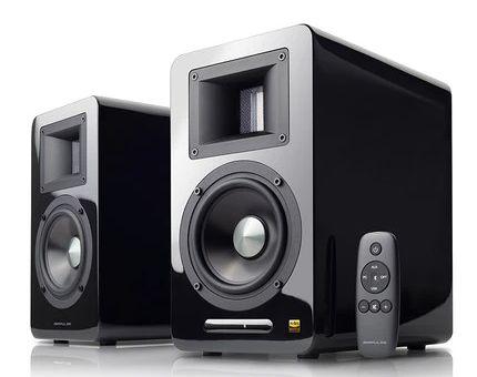 Еще одна модель от популярного производителя Edifier. Корпус с наклоном 10 градусов к пользователю, фазоинвертор выведен вперед (можно ставить вплотную к стене). Мощность 35 Вт на канал, есть протокол Bluetooth и можно дополнить систему сабвуфером. Набор динамиков: 19 мм купол из шелка + 4″ НЧ и диффузором из номекса.