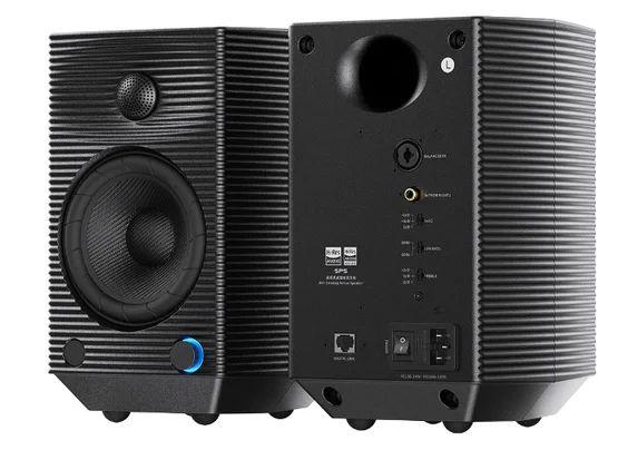 Открывает выборку — компактная активная акустика (мини мониторы) от китайской компании FiiO (получившей известность выпуском портативной техникой). Модель SA1 отличается множеством вариантов входов сигнала (есть Bluetooth с кодеком LDAC, USB-C и даже фонокорректор для виниловой вертушки) и удобством управления (рукоятка на корпусе, пульт и мобильное ПO со встроенным эквалайзером на 31 полосу). Мощность 25 Вт.