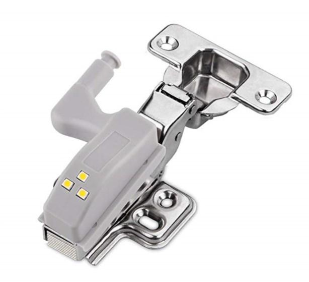 Это недорогой светодиодный светильник, который можно легко и быстро смонтировать на стандартных петлях практически любой мебели. После монтажа при открытии дверцы, допустим шкафа, внутренние пространство подсвечивается. В комплект поставки включено 10 светильников, а при заказе можно выбрать цвет свечения. Стоит отметить, что стоимость одного светильника с батареей достаточно низкая, благодаря чему изделие очень популярно среди покупателей и имеет более 2500 продаж. Стоит отметить, что монтаж такого светильника не требует никаких специальных навыков, а также прокладке проводов и так далее. На мой взгляд, такое решение по освещению внутреннего пространства в шкафах является одним из самых удобных.