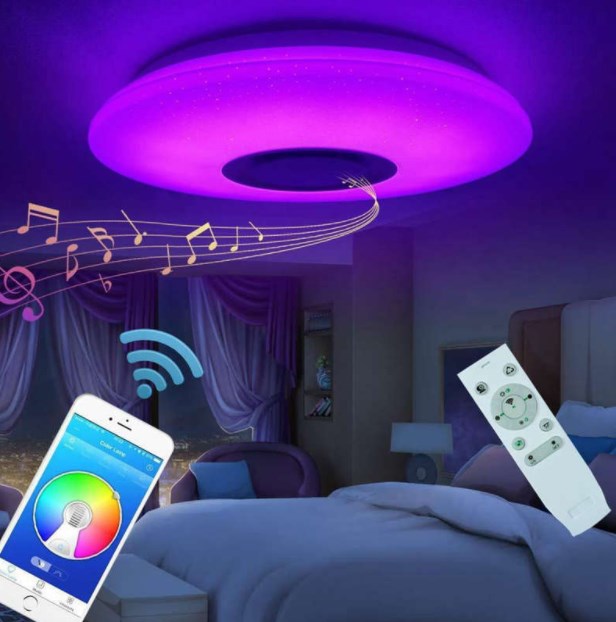 Это отличный поточный светильник, в котором имеется RGB светодиоды. А также светильник имеет встроенный динамик, с которого можно прослушивать музыку. Я лично проверил данную модель и могу уверенно сказать, что это хорошее решения для освещения помещений до 20 квадратных метров. В моем профиле на данном сайте имеется полный обзор на этот светильник. Также добавлю, что в комплекте с осветительным прибором продавец поставляет удобный пульт дистанционного управления.