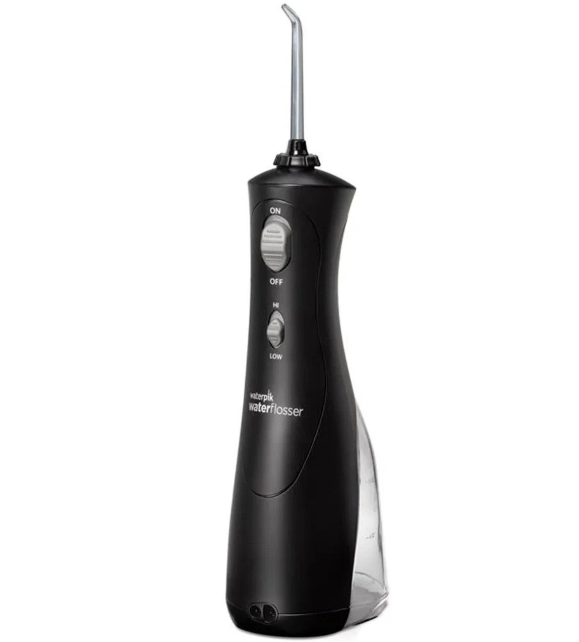 Простая, но понятная в использовании модель портативного ирригатора имеется и у бренда WaterPik. Этот ирригатор WP-462 E2 Cordless Plus оснащается механическим переключателем режимов и включения сдвижного типа — подойдет для тех, кто не любит сенсорные кнопки. Всего два режима, но в них сложно будет запутаться. Отмечу, что предусмотрен импульсный режим работы.
