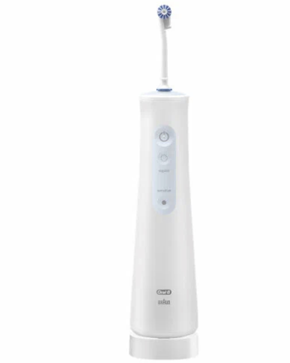 Бренд Oral-B также может похвастаться наличием в своём ассортименте компактной модели ирригатора для ухода за полостью рта. Речь идет про Aquacare 4 Oxyjet с пузырьковой насадкой. Имеется два уровня регулировки интенсивности — стандартная и для бережной чистки.
