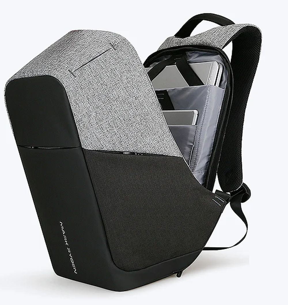 Узнаваемая модель от Mark Ryden также давно снискала популярность благодаря своему оригинальному внешнему виду и функциональности. Данный вариант обладает продуманной конструкцией с защищенными молниями и имеет возможность полного раскладывания двух частей. Подойдет для транспортировки ноутбука с диагональю до 15.6′′. Комбинация серого с черным оттенков водоотталкивающей ткани придают аксессуару стильный и современный образ. В рюкзак присутствует USB порт для подключения к пауэрбанку смартфона. Объем 30л.