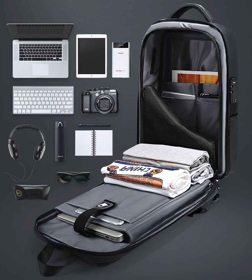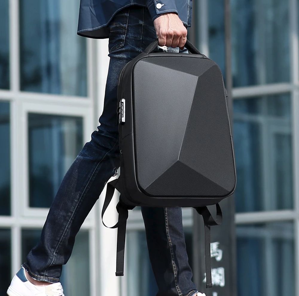 Отличная модель, которая хорошо защищает содержимое даже в суровой городской толчее. Упругая граненая панель рюкзака выполнена из EVA материала и придает рюкзаку не только стильный внешний вид, но и обеспечивает отличную сохранность вещей внутри. На странице товара две версии: стандартная и апгрейд, во втором варианте есть возможность увеличения объема за счет расширения корпуса рюкзака с 12 до 18см. Все молнии оснащены противокражевой защитой. А для основного отделения предусмотрен встроенный кодовый замок. Раскладывается на 180 градусов, есть USB разъем, лямка для фиксации на чемодане.