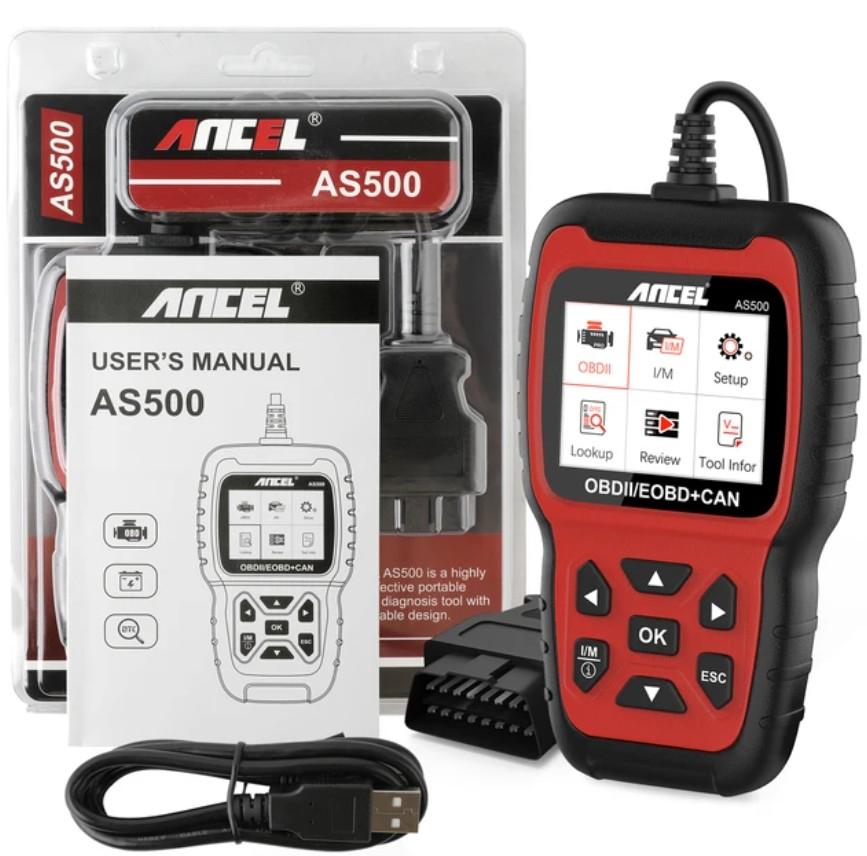 Еще одна модель универсального сканера для использования своими руками. Это автономный Ancel AS500 с дисплеем и кнопочным блоком. Питается от OBD2 разъема автомобиля. Позволяет выполнить считывание и очистку кодов, просмотр стоп-кадра и данных в реальном времени. Есть USB порт для подключения к ПК с целью распечатки отчетов, логов и обновления ПО.