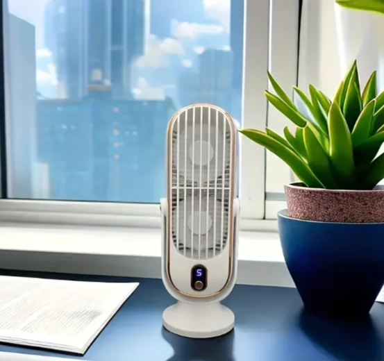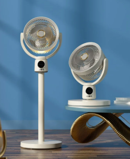 Компактный вентилятор, предназначенный для настольного и напольного использования. Оснащён складной конструкцией с возможностью регулировки высоты и угла наклона. Выдвижной штатив позволяет использовать устройство как в помещении, так и вне дома.