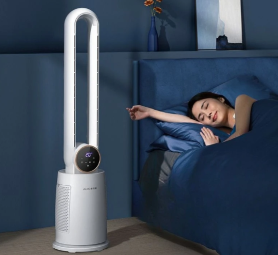 Башенный напольный вентилятор без лопастей, предназначен для помещений площадью 15-25 м². Работает от сети переменного тока с напряжением 110 В, максимальная потребляемая мощность — до 69 Вт. Обеспечивает естественный обдув с осциллирующим (колеблющимся) режимом подачи воздуха влево и вправо. Лопасти в конструкции отсутствуют, что снижает уровень шума и делает устройство безопасным для использования в детских комнатах.