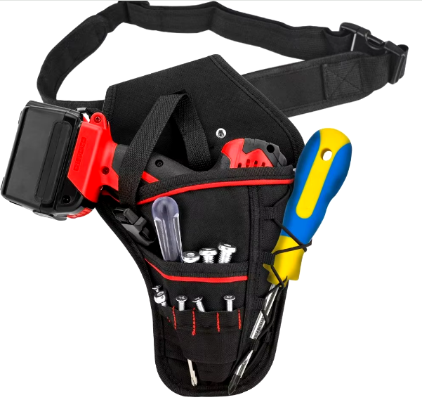 Далее также бюджетная поясная мини-сумка для небольшого количества инструментов. В отзывах покупатели именуют данный товар как «кобура для шуруповерта». По реальным фото в отзывах видно, что в эту сумку действительно поместится шуруповерт и все дополнительные мелочи для него.
