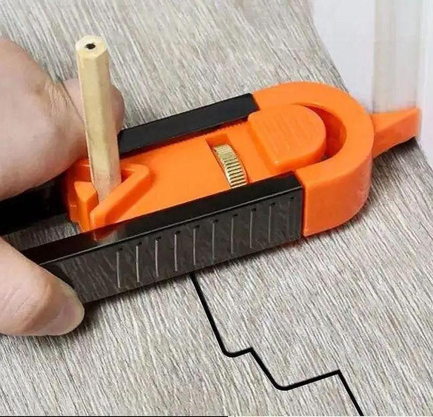 Завершу подборку необычной штукой, которая будет полезна при разметке на разных материалах точного криволинейного контура сопрягаемых деталей. Например, крайне удобно его использовать при укладке ламината или паркета около дверных проемов и коробов. С помощью данного инструмента можно повторить точный профиль коробки и вырезать нужный контур на напольном покрытии, чтобы получить точное примыкание деталей. Инструмент идет в комплекте с двумя карандашами.