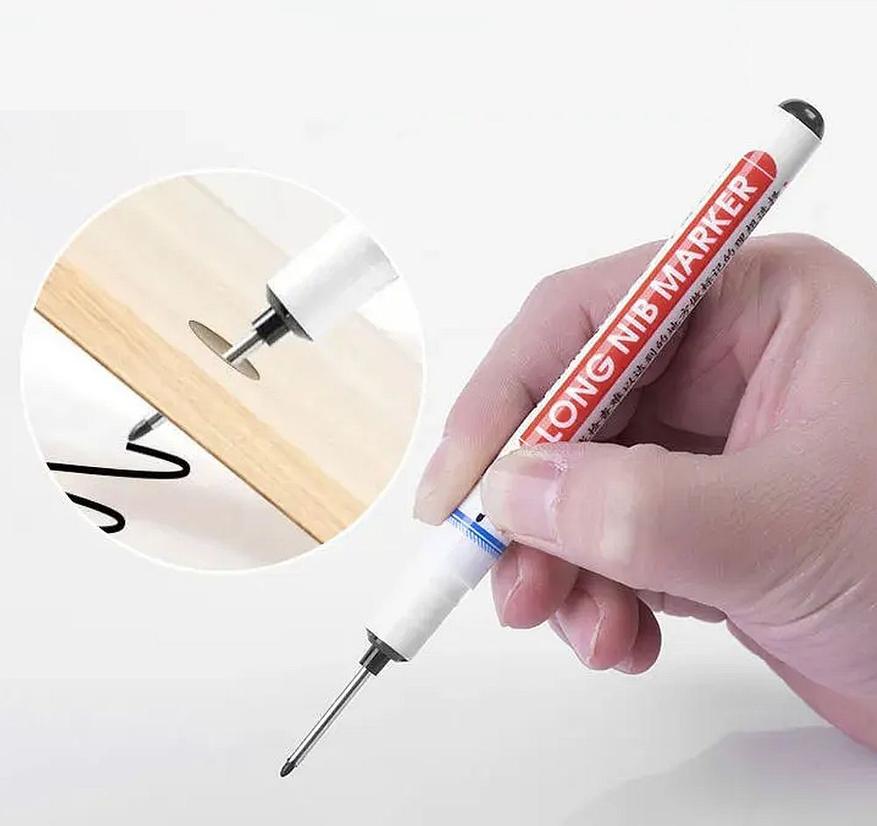 Полезная разметочный маркер-ручка имеющий такую особенность как узкий металлический наконечник с пишущей частью на конце. Данный вариант отлично подходит и для линейной разметки и для маркировки центров сверления прямо через соответствующие отверстия устанавливаемой детали (например, держателя полки), которые могут быть весьма глубокими. Толщина наконечника составляет всего 2мм, а длина 20мм, на выбор три цвета. Чернила маркера водоустойчивые и быстро сохнут. Обзор на данный маркер Вы можете почитать тут: Разметочный маркер с удлиненным стержнем