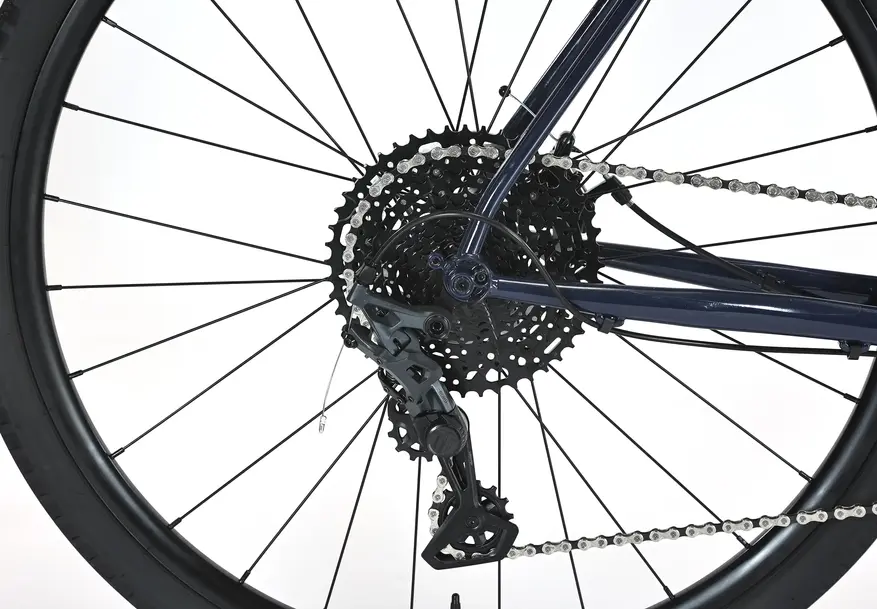 С точки зрения характеристик полный порядок, втулки на осях, промподшипники «вкруг», внутренняя проводка, обода и покрышки с поддержкой бескамерки. В стоке идут накатистые покрышки WTB ByWay 700х44c. Заявлена поддержка до 45 мм включительно, однако реально зазоры позволяют установить сзади 47 мм, а спереди все 50 мм.