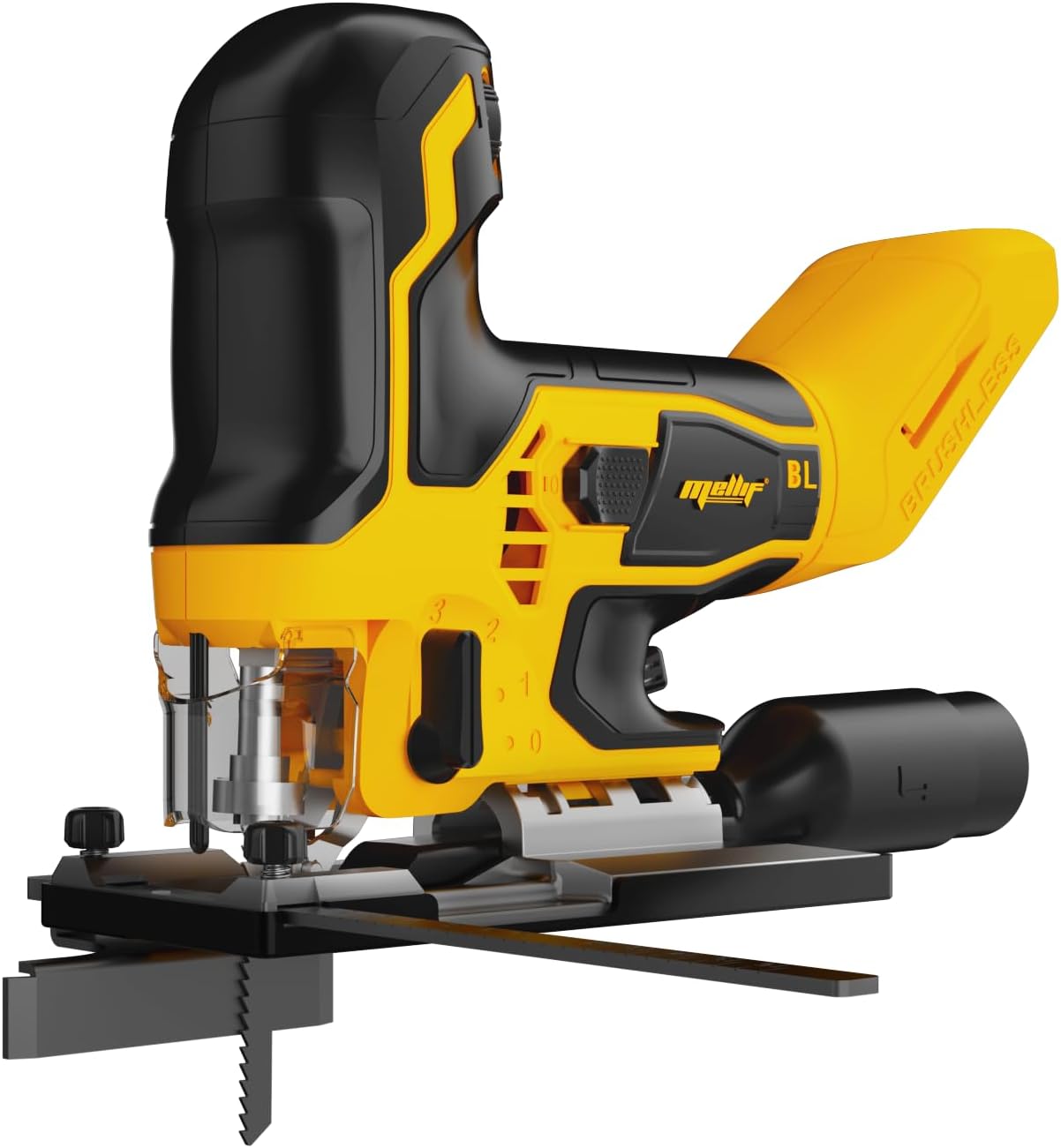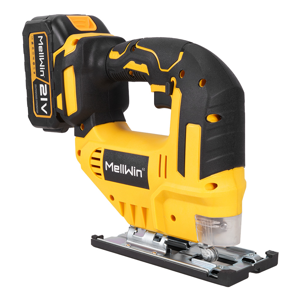 Модель оснащена двигателем 750 Вт, скорость холостого хода до 3500 об/мин, длина хода — 26 мм, три положения качания. Возможен угол реза до 45° в обе стороны. Пильное полотно устанавливается без инструментов, есть прозрачный пылезащитный кожух и светодиодная подсветка. Предназначен для дерева, пластика и металла. В комплект входят лобзик, инструмент для замены полотна и 31 лезвие; в некоторых вариантах — аккумуляторы и зарядное устройство. Производитель — MELLWIN, Китай.