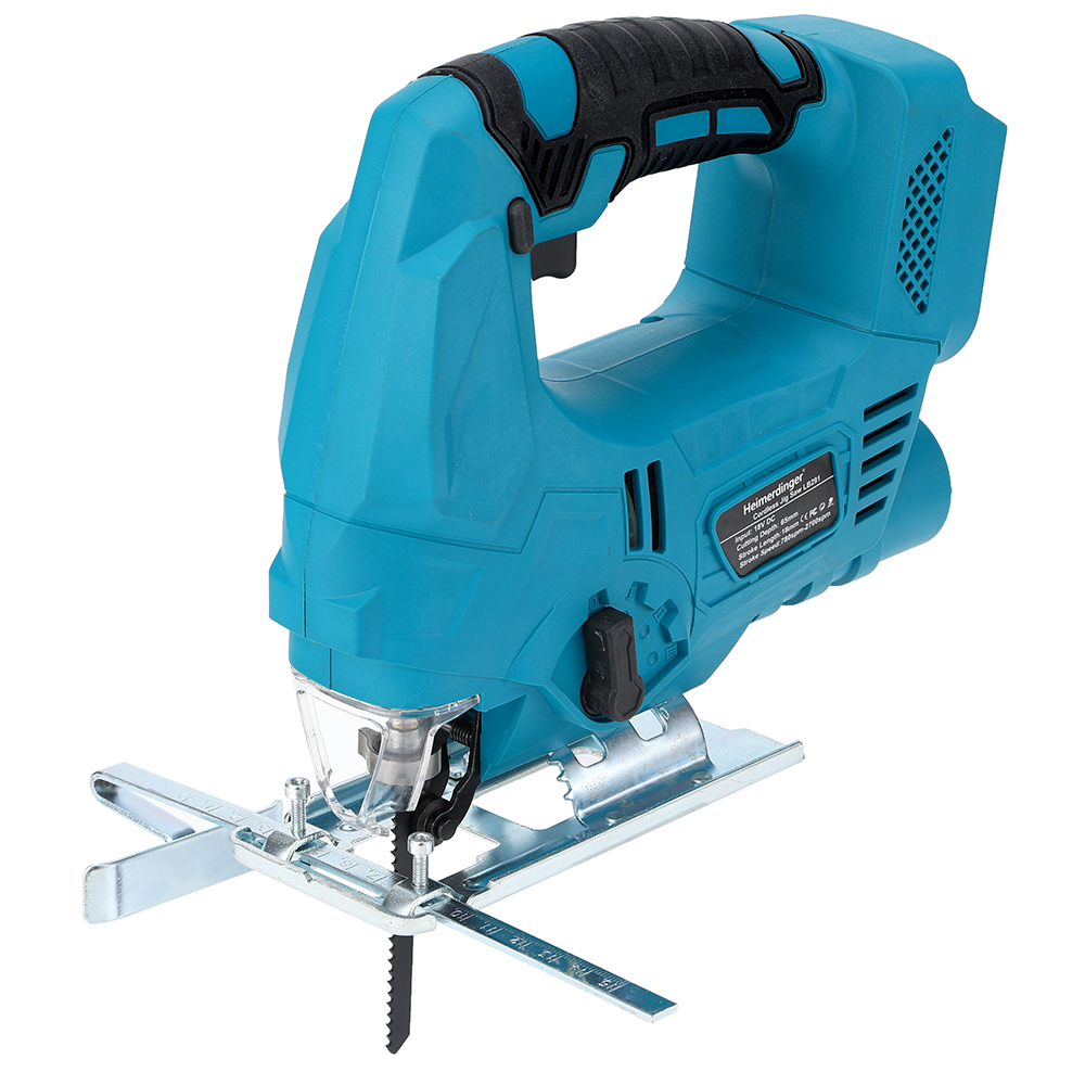 Работает от аккумулятора 18 В, глубина реза — 65 мм, скорость холостого хода — 0-2700 об/мин. Поддерживает четыре маятниковые позиции, угол реза регулируется. Оснащён быстрым патроном для замены лезвий, прозрачной пылезащитной крышкой и регулируемой нижней пластиной. В комплекте могут быть корпус, аккумуляторы, пильное полотно и Т-образный ключ. Производитель — Heimerdinger, Китай.