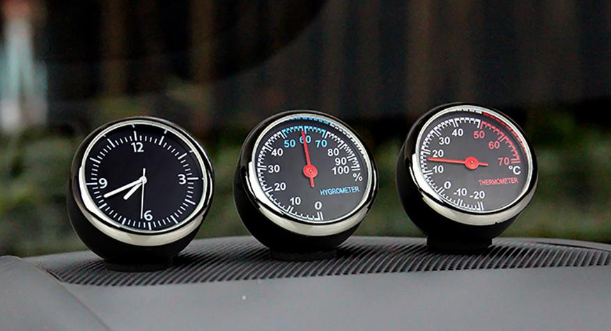 Декоративные приборчики: термометр, гигрометр и часы. Смотрятся в салоне очень хорошо!