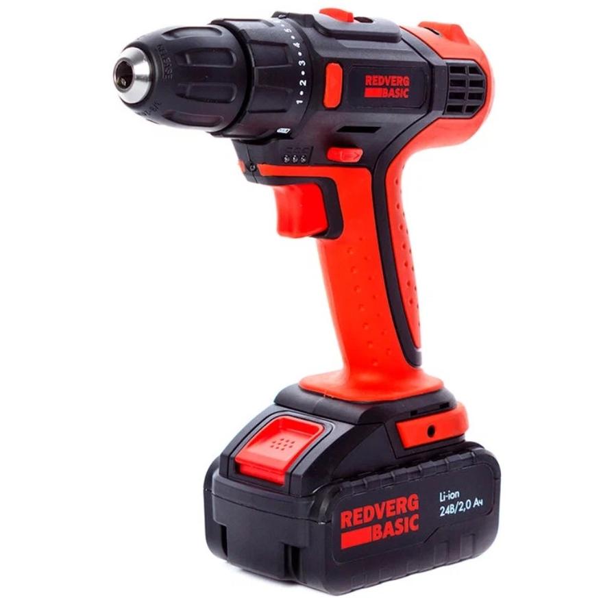 Альтернативой представленным выше моделям может служить дрель SD24L/2-2 от бренда RedVerg. В отличие от предыдущих вариантов, в спецификации эту модель устройство заявлено рабочее напряжении в 24 Вольта. Пиковый момент, который может получиться при заклинивании патрона может быть до 40 Нм. Производитель предусмотрел дополнительно электронный тормоз для двигателя, который срабатывает при отпускании кнопки. В комплект поставки входят сразу две акб на 2.0 Ампер-часа, а также сетевое зарядное устройство.