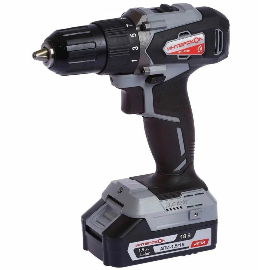 Достаточно известная марка производителя электроинструмента — ИНТЕРСКОЛ. В частности, можно обратить внимание на аккумуляторную дрель-шуруповерт модели ДА-13/18ВК. Представляет собой данная модель базовую версию (без функции удара) для бытового применения. В плюсах можно отметить комплектацию с жестким кейсом из черного ABS-пластика, а также сзу и сразу два акб находится внутри кейса Заявленные характеристики батарея — 18 Вольт и 1.5 Ампер-часа.