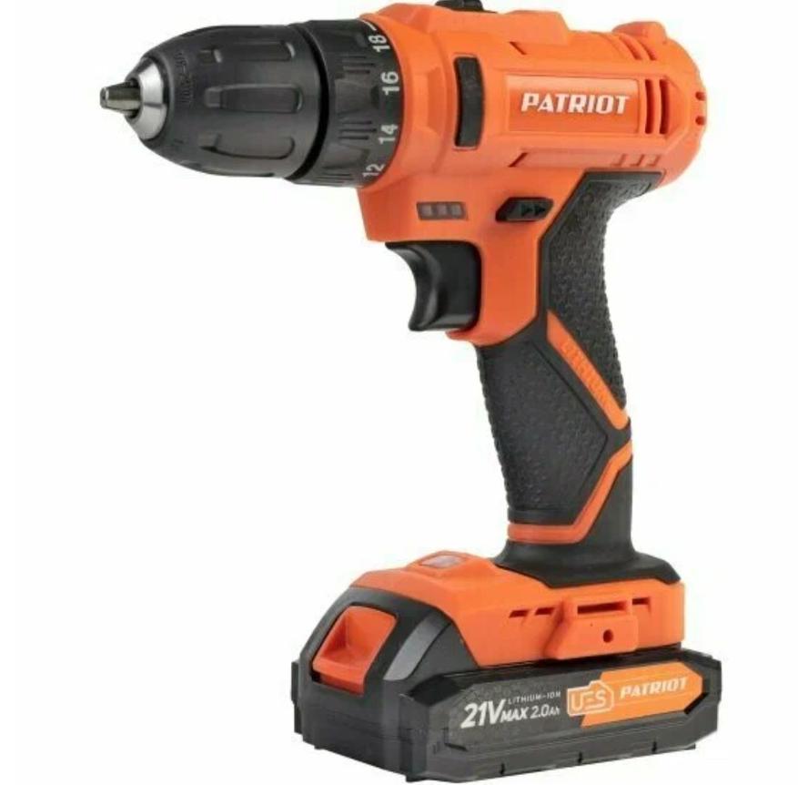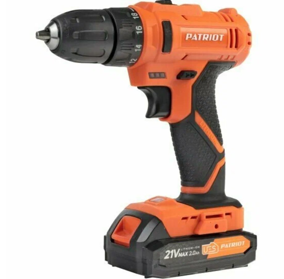 Недорогой вариант рабочей дрели-шуруповерта можно найти в ассортименте бренда Patriot. Например, Patriot BR189UES — такой вариант будет уместен как для домашнего мастера, так и для использования в хоббийной мастерской. По заявлению производителя момент у этой дрели составляет 29 Нм. Что же касается оснастки, то вполне можно устанавливать сверла и насадки с диаметром до 10 миллиметров. В подошве инструмента размещен небольшой LED-диод с линзой, с помощью которого можно осветить место работы в плохо освещенных местах. Вариант интересен комплектацией с жестким чемоданчиком, внутри которого находится не только сама дрель, но и пара батареек по 2.0 Ампер-часа, а также сетевое з/у.
