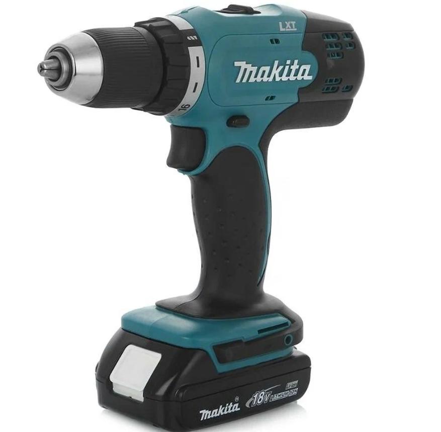 Не стоит забывать и широко распространённый бренд Makita и его популярную серию дрелей-шуруповертов DDF453, предназначенных как для домашнего использования, так и для профессионального применения. Заявленный момент на двигателе в момент блокировки редуктора может достигать 42 Нм. Комплектация DDF453SYX5 поставляется в картонной коробке, внутри находится сама «тушка» дрели, одна аккумуляторная батарея на 1.5 Ампер-часов, а также сетевое зарядное устройство с функцией быстрой зарядки (до получаса на батарею). Есть и руководство для пользователя, гарантийный талон. Аккумуляторные батареи используются стандарта LXT — буквально на днях я рассказывал про эти батареи.