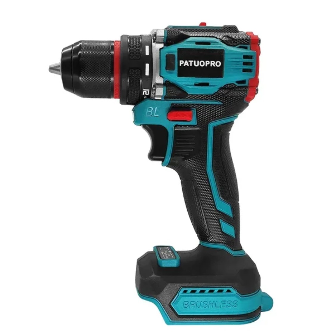Завершает подборку совсем недорогая модель от фирмы PATUOPRO (PT-Club). В отличие от откровенно дешевых коллекторных моделей, в этом шуруповерте используется бесщеточный двигатель с приличными характеристиками. Это 50 ньютон-метров момент, диаметр хвостовика оснастки 10 мм и типовые 18V батареи (подходят от Макиты). Патрон быстрозажимной — с таким инструментом удобно работать одной рукой. Также отмечу небольшую массу — до 1 кг, что в совокупности с облегченным аккумулятором дает определенную свободу действий. Подробности можно найти в моём обзоре шуруповерта.