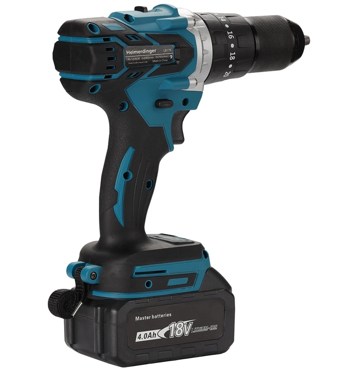 Далее, китайский шуруповерт с крутящим моментом до 120 ньютон-метров. Речь про Heimerdinger L176 — бесщеточный инструмент с функцией удара (осевой удар) и работой от батарей 18V. Эта универсальная модель, которая подойдет и для ремонта, и для работы в гараже, и даже для рыбалки в качестве ледобура. Но не без минусов — тяжеловата, особенно в комплекте с 6.0 Ач батареей. Я до сих работаю в гараже именно этой моделью — вот обзор и пример использования.