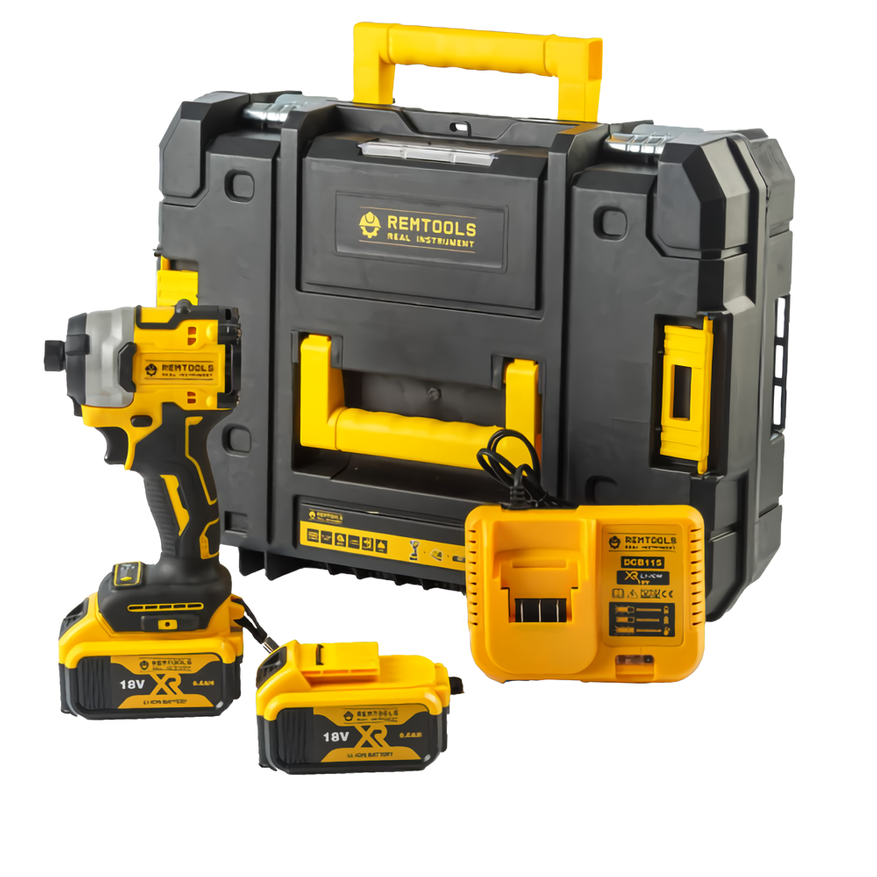Remtools 18В — серия аккумуляторных шуруповёртов для бытового и профессионального использования. Линейка отличается разнообразием комплектаций и балансом мощности с ценовой доступностью. Например, базовая стоимость за тушку стартует от 4 100 ₽ и достигает 12 980 ₽ за комплект с кейсом и двумя батареями. Старшие варианты включают ударный шуруповёрт (200 Н*м, 3 скорости, 2 АКБ) за ~9 700 ₽ и импульсный (140 Н*м) за ~7 800 ₽.
