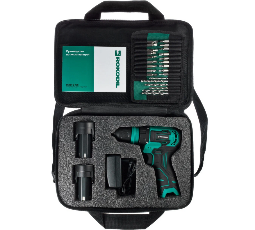 Открывает сегодняшнюю подборку Rokodil Twist 2 Air — аккумуляторная дрель-шуруповёрт для бытовых и полупрофессиональных задач: закручивание крепежа, сверление дерева, металла, пластика, ремонтные работы. Модель оснащена бесщёточным двигателем и поставляется в расширенной комплектации (Set 2), обеспечивая готовность к работе сразу после распаковки. Перед покупкой рекомендую ознакомиться с моим обзором.