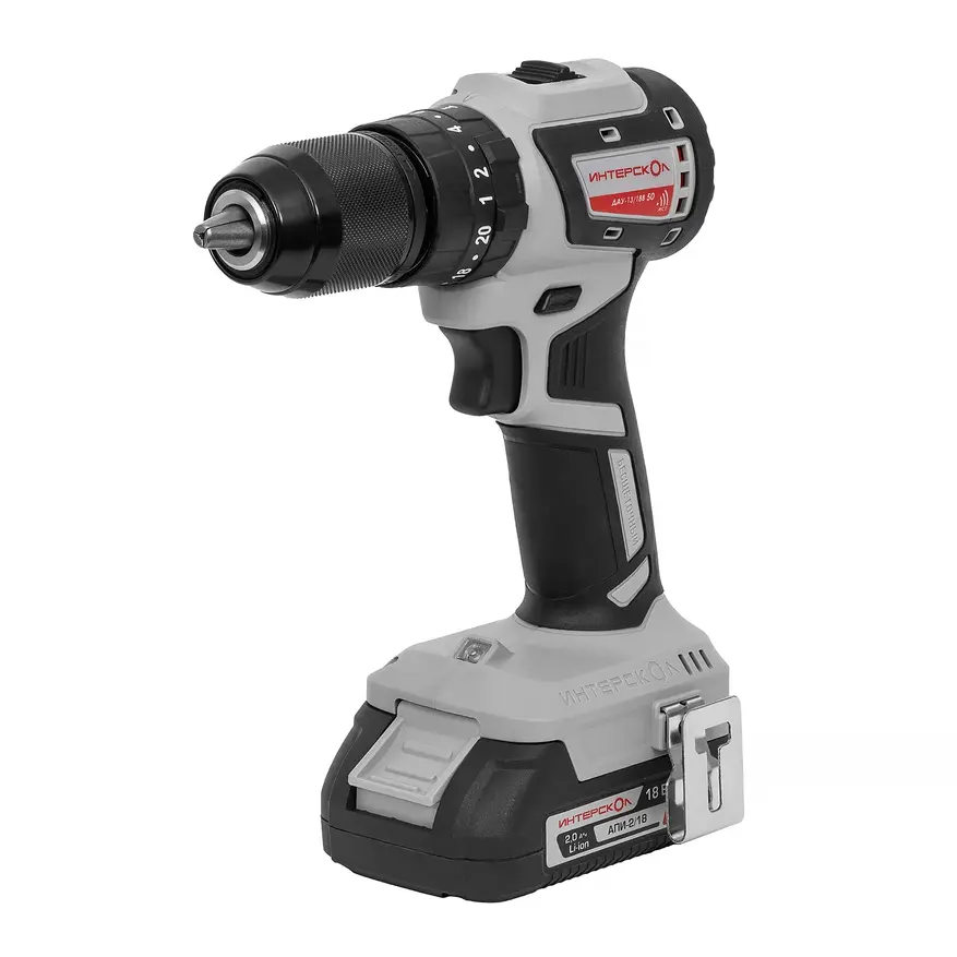 Интерскол ДАУ-10/18В работает от аккумулятора Li-Ion на 18 В. В комплекте пара с ёмкостью 2,5 А*ч, обеспечивающая длительную автономность (обещают до 850 саморезов или 330 отверстий на одном заряде). Шуруповерт развивает крутящий момент 44 Н*м, оснащён двухскоростным редуктором (0-450 об/мин для закручивания и 0-1650 об/мин для сверления). Ударный механизм обеспечивает частоту до 25 500 уд/мин для кирпича, керамики и лёгкого бетона.