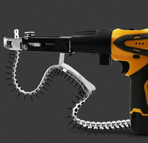 Эта насадка является эффективным решением для мастеров, регулярно работающих с большим объемом саморезов, поскольку она обеспечивает автоматическую и последовательную подачу крепежа непосредственно к бите с использованием пластиковой ленты.