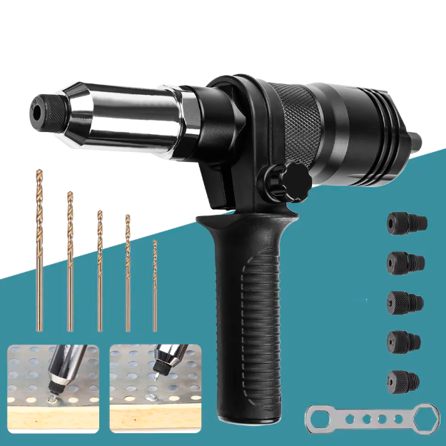 Насадка для установки вытяжных заклепок, использующий приводную мощность шуруповериа или электрической дрели. Этот инструмент, изготовленный из кованой легированной стали, отличается высокой износостойкостью и долговечностью, позволяя проводить монтаж плавно и без проскальзывания.