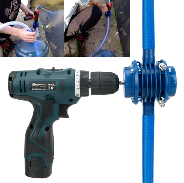 Конструкция насоса выполнена из нержавеющей стали и прочного пластика, что обеспечивает его малый вес и долговечность. Устройство легко подключается к патрону и идеально подходит для решения широкого спектра бытовых задач.