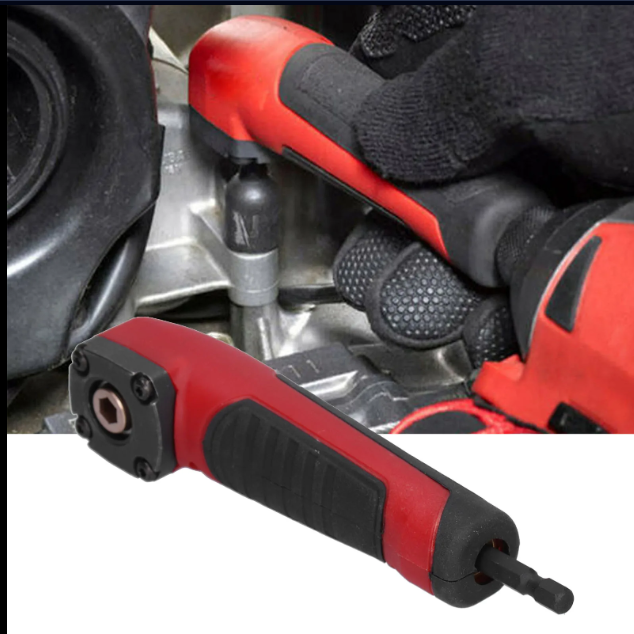 Адаптер предназначен для выполнения работ по сверлению и закручиванию в труднодоступных местах, куда невозможно подвести шуруповерт под прямым углом.