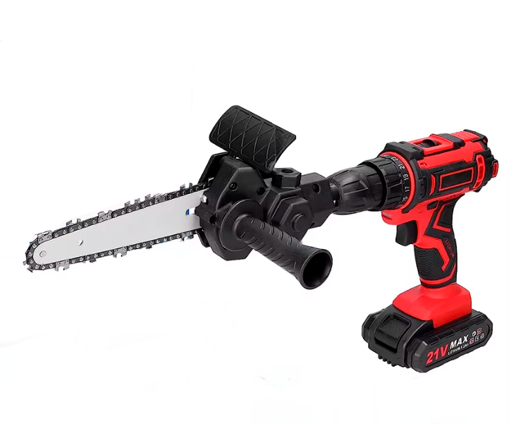 Эта насадка позволяет легко превратить шуруповерт или дрель в миниатюрную 6-дюймовую цепную пилу. Компактные габариты и малый вес делают её практичным выбором для обрезки сада и выполнения работ по дереву, обходясь без покупки габаритной цепной пилы.